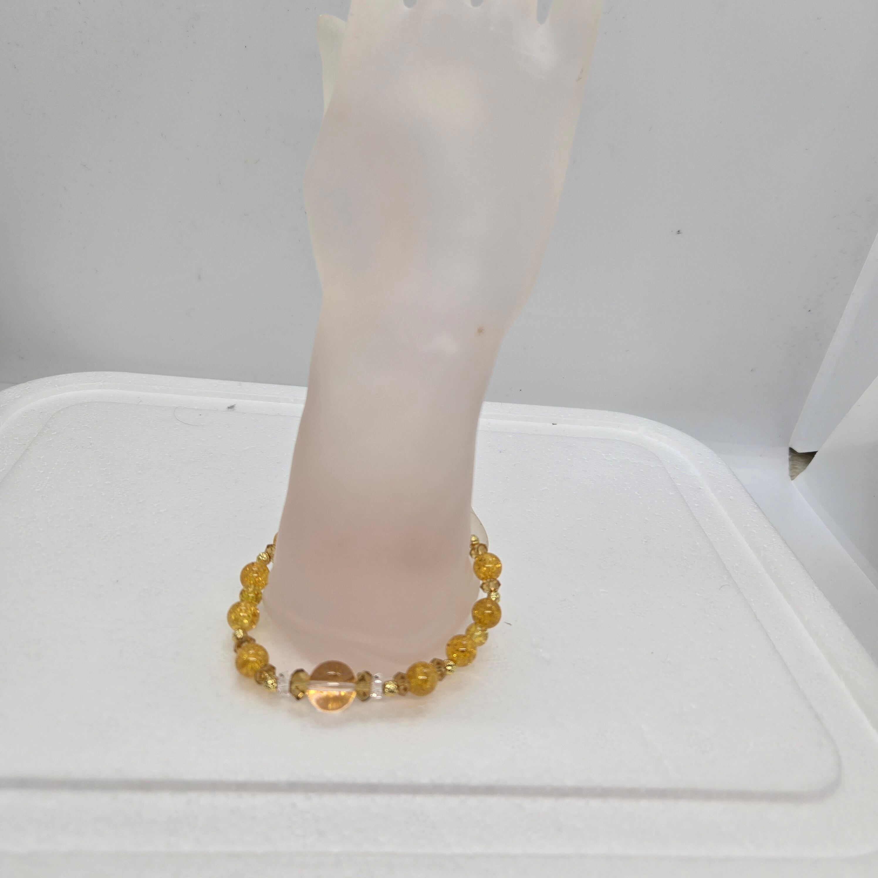 白水晶1個(12mm珠 蛇刻印)、2個(6×3mm/カット)、黄水晶2個(8×4mm/カット)、8個(6×3mm/カット)、爆裂黄水晶12個(8mm珠)、4個(6mm珠)、ビーズパーツ8個(4mm珠 真鍮)[サイズ]約18cm(内径)[重量]約18g[中糸]ポリウレタンゴム[付属品]専用巾着袋、吉兆蛇ストラップ[個装サイズ]縦15.8×横10.0×高さ3.0(cm)/43.0(g)[付属品]蛇パーツ1個(22×23mm 真鍮/ゴールド色仕上)、黄水晶1個(12mm珠/128面カット)/サイズ:約8cm、重量:約15g、中糸:ステンレスワイヤー