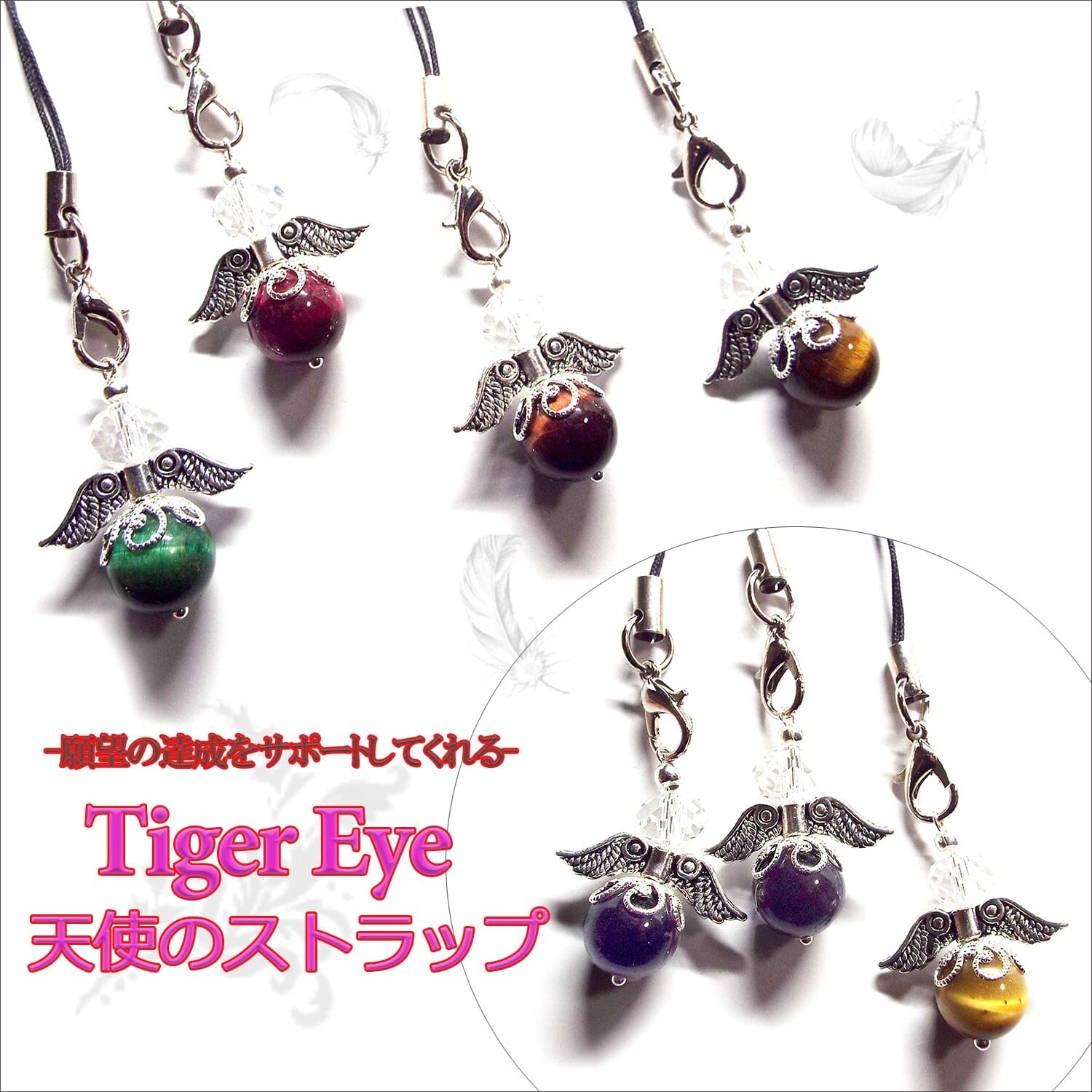 【SION 天然石 パワーストーン】☆願望の達成をサポートしてくれる♪天使のストラップ☆やっぱり可愛いストラップはオシャレ女子に必要なアイテム☆そこで乙女心をくすぐるキュートで可愛いストラップをご紹介します♪カバンやケータイ・スマホに付けて運気をUP!!!スマホ・ケータイをもっと可愛くデコレーションしちゃおう!!金運や仕事運を高め願望の達成をサポートしてくれる石として高い人気を誇るタイガーアイ。またタイガーアイはとても強い邪気祓いの力を秘めていると伝えられています。邪悪なものを跳ね返し災いから持ち主を守ってくれるといわれています。
