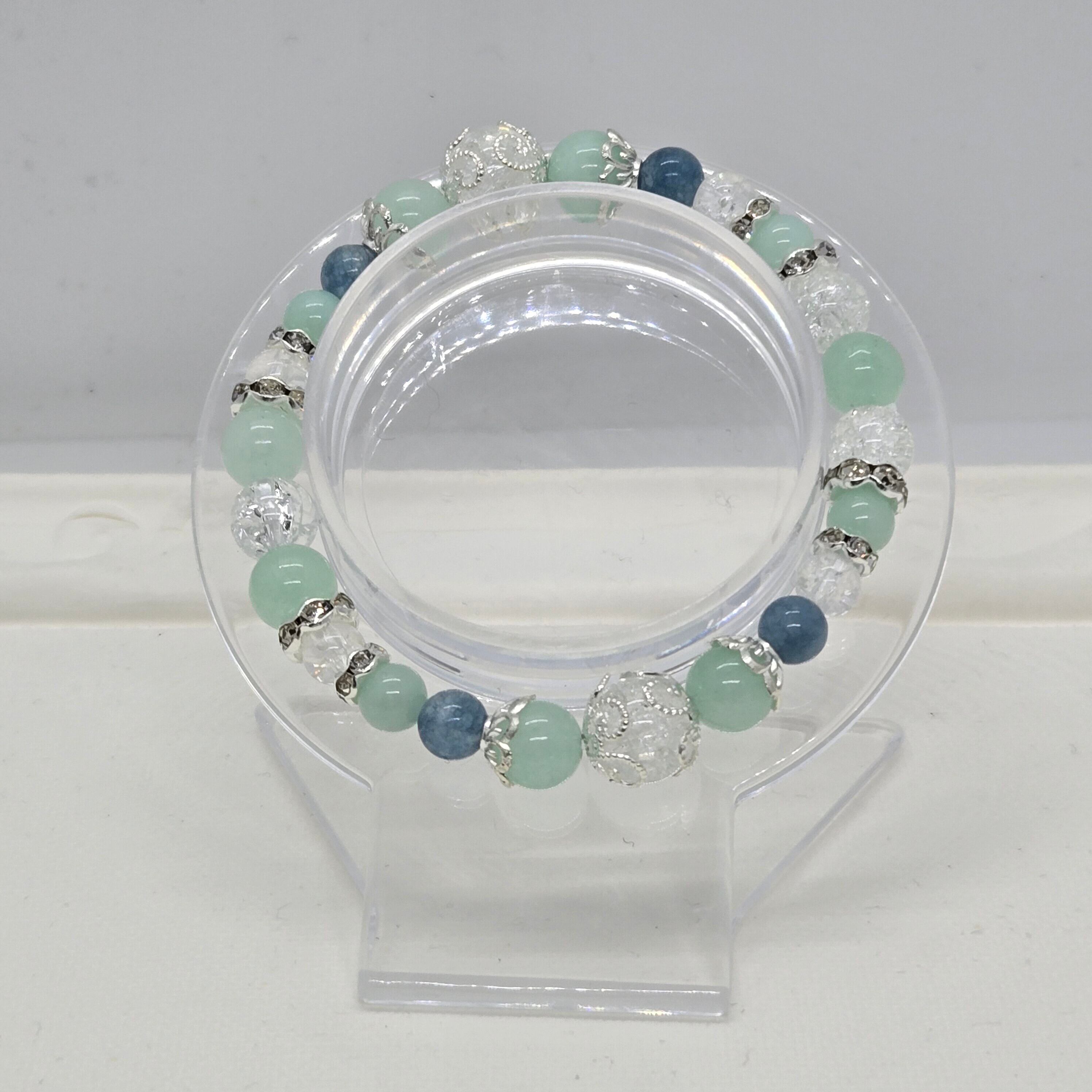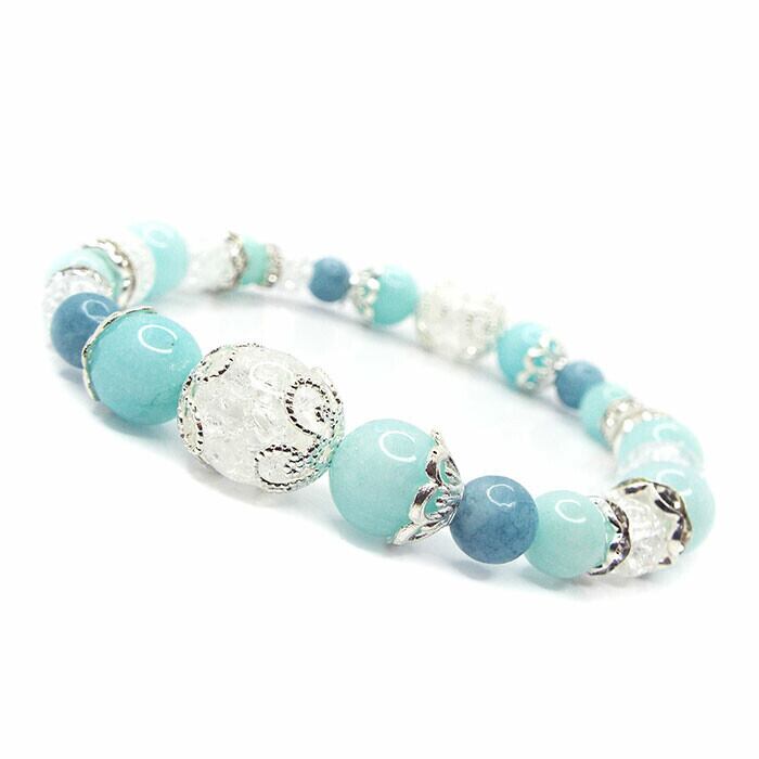 【SION 天然石 パワーストーン】海とリゾートにピッタリのマリン系癒しカラー♪デザインブレスレット!!!☆アマゾナイト×クラック水晶☆アマゾナイトの華奢なブレスレットはこれからの季節にぴったり肌馴染みがよくどんなスタイルにも合います♪付けているだけで穏やかな気持ちになれそうです☆アマゾナイトは「希望の石:ホープストーン」と呼ばれる程明るく希望に満ちたエネルギーを持つ石です。健康面においても精神的なストレスを軽減させることによってストレス面から来る臓器の不調を改善に導きます。