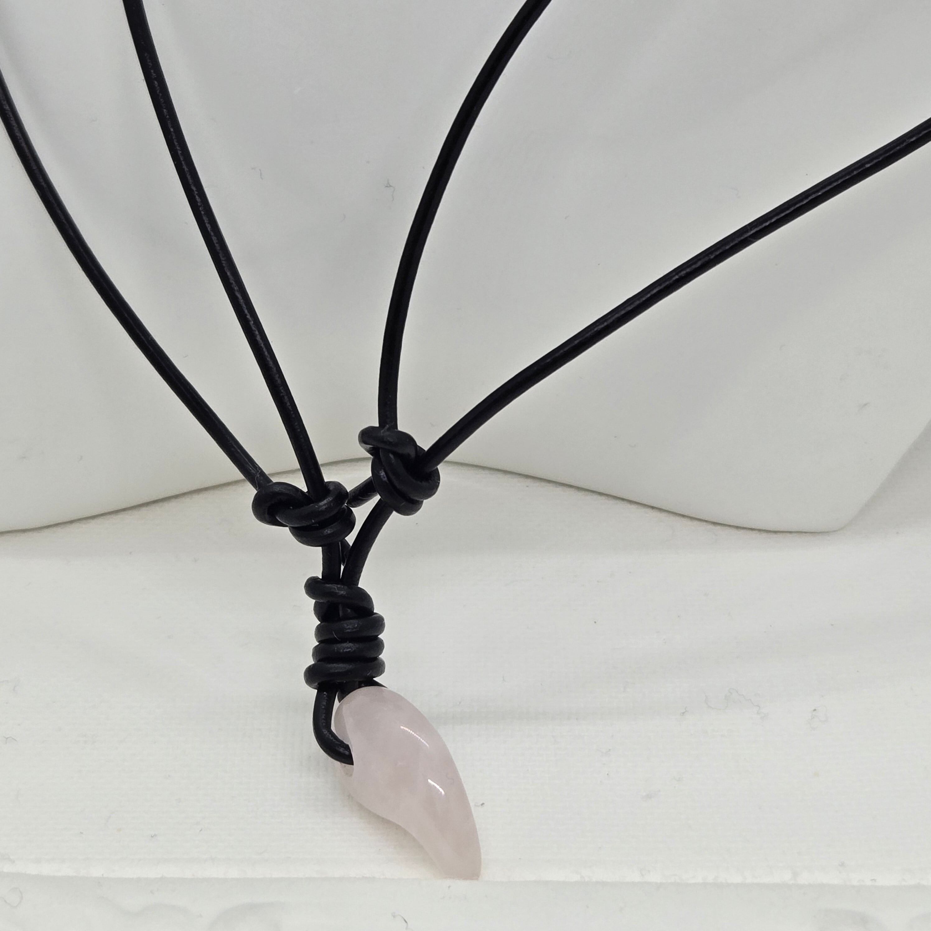 天然石 勾玉 革紐ネックレス 調整式 ローズクォーツ 《SION 天然石 パワーストーン》