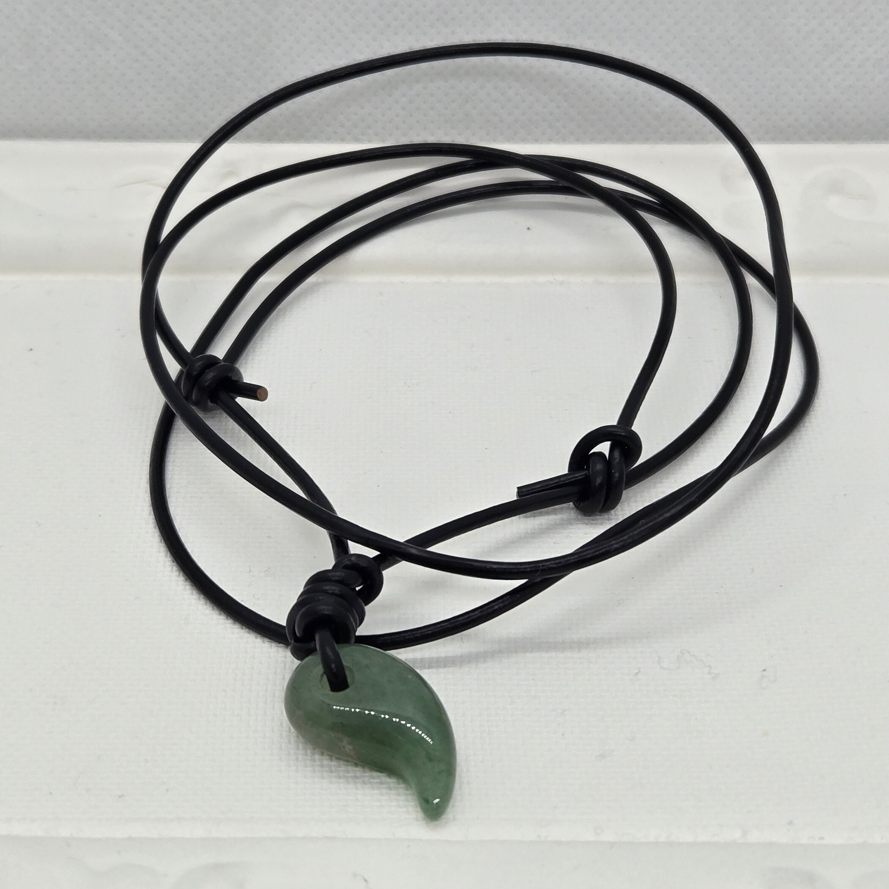 天然石 勾玉 革紐ネックレス 調整式 アベンチュリン 《SION 天然石 パワーストーン》