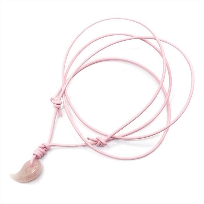 天然石 パワーストーン 勾玉 革紐ネックレス ローズクォーツ ピンク 調整式