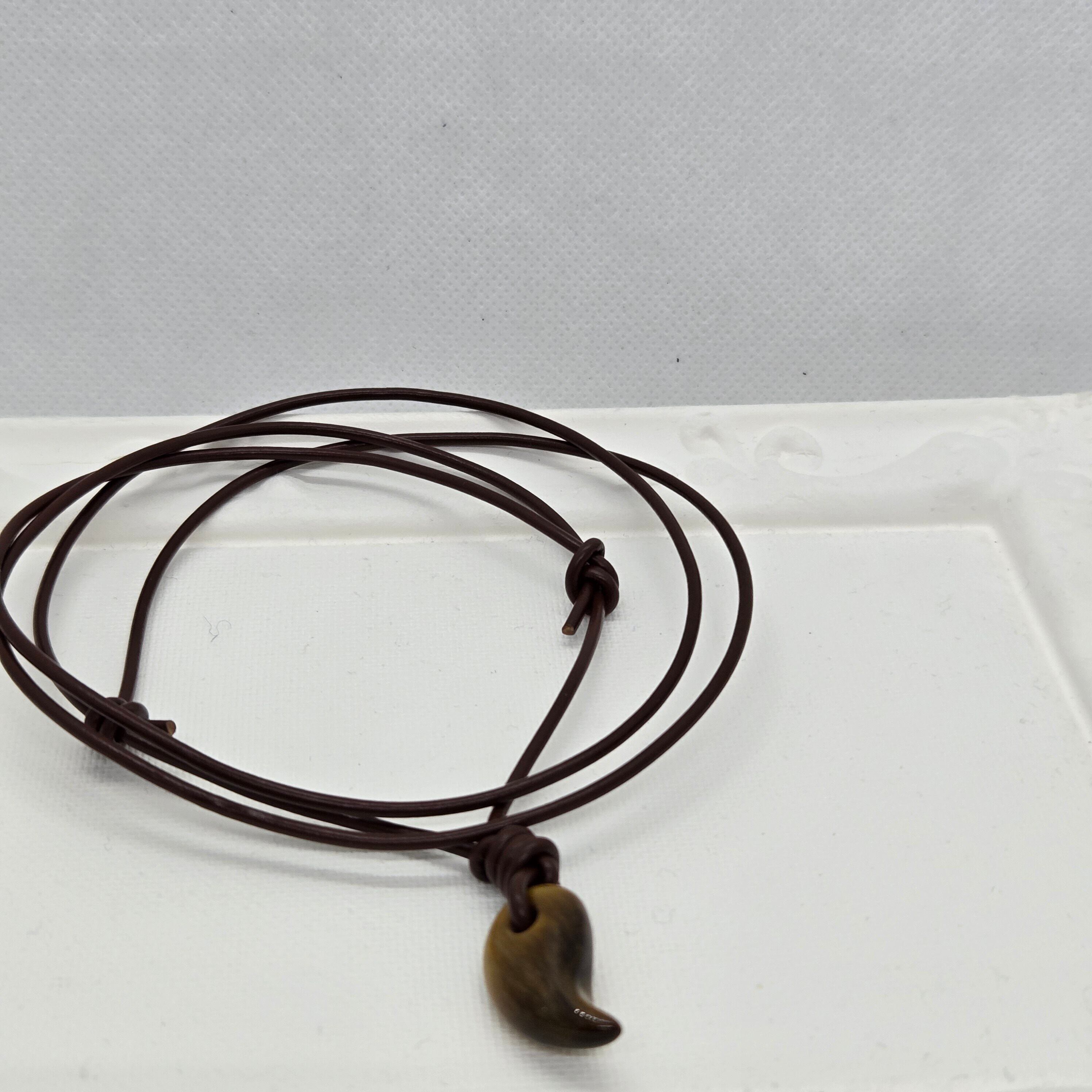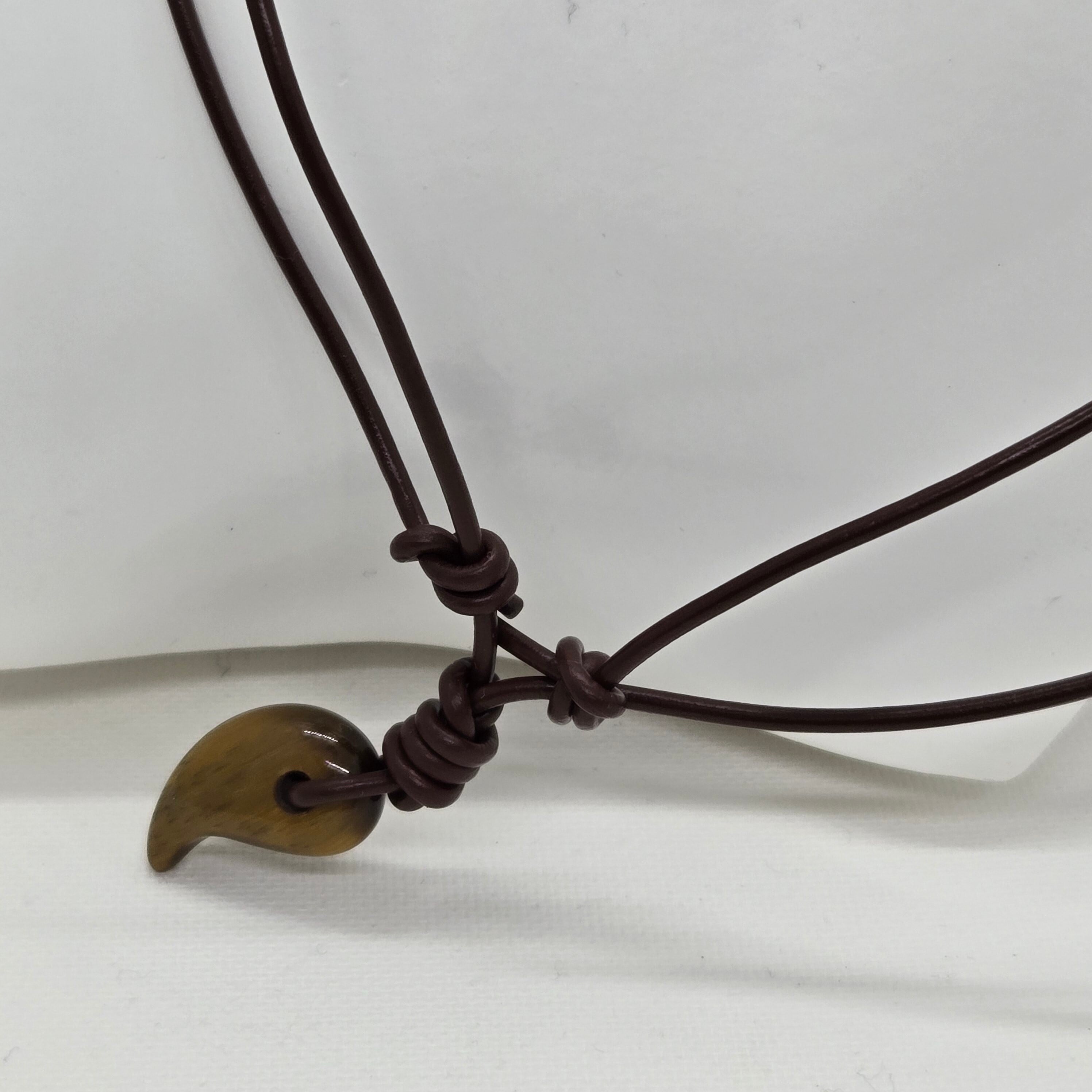 天然石 パワーストーン 勾玉 革紐ネックレス タイガーアイ ブラウン 調整式