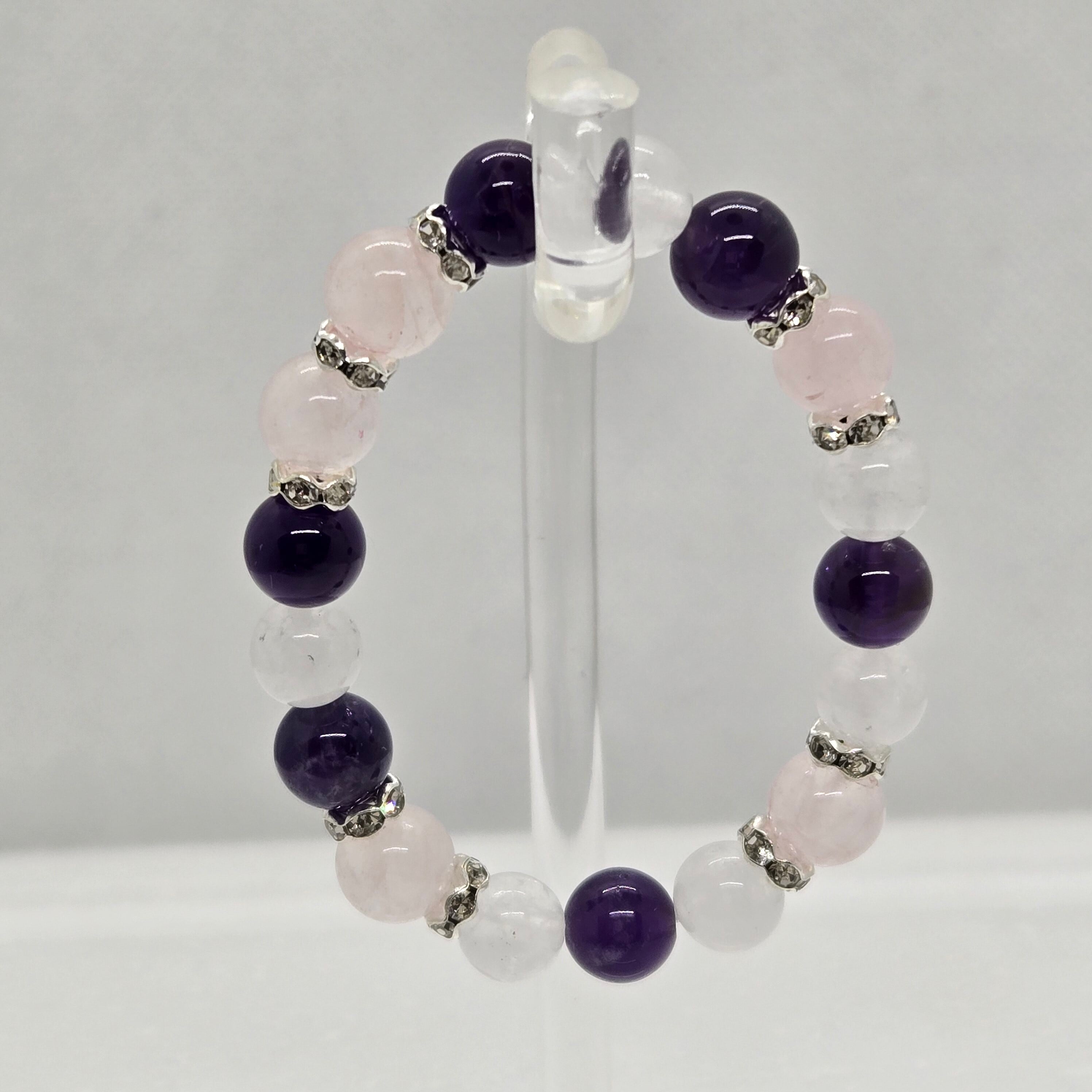 ■素材・成分:玉サイズ:ローズクォーツ 約8mm ホワイトジェイド 約8mm アメジスト 約8mm