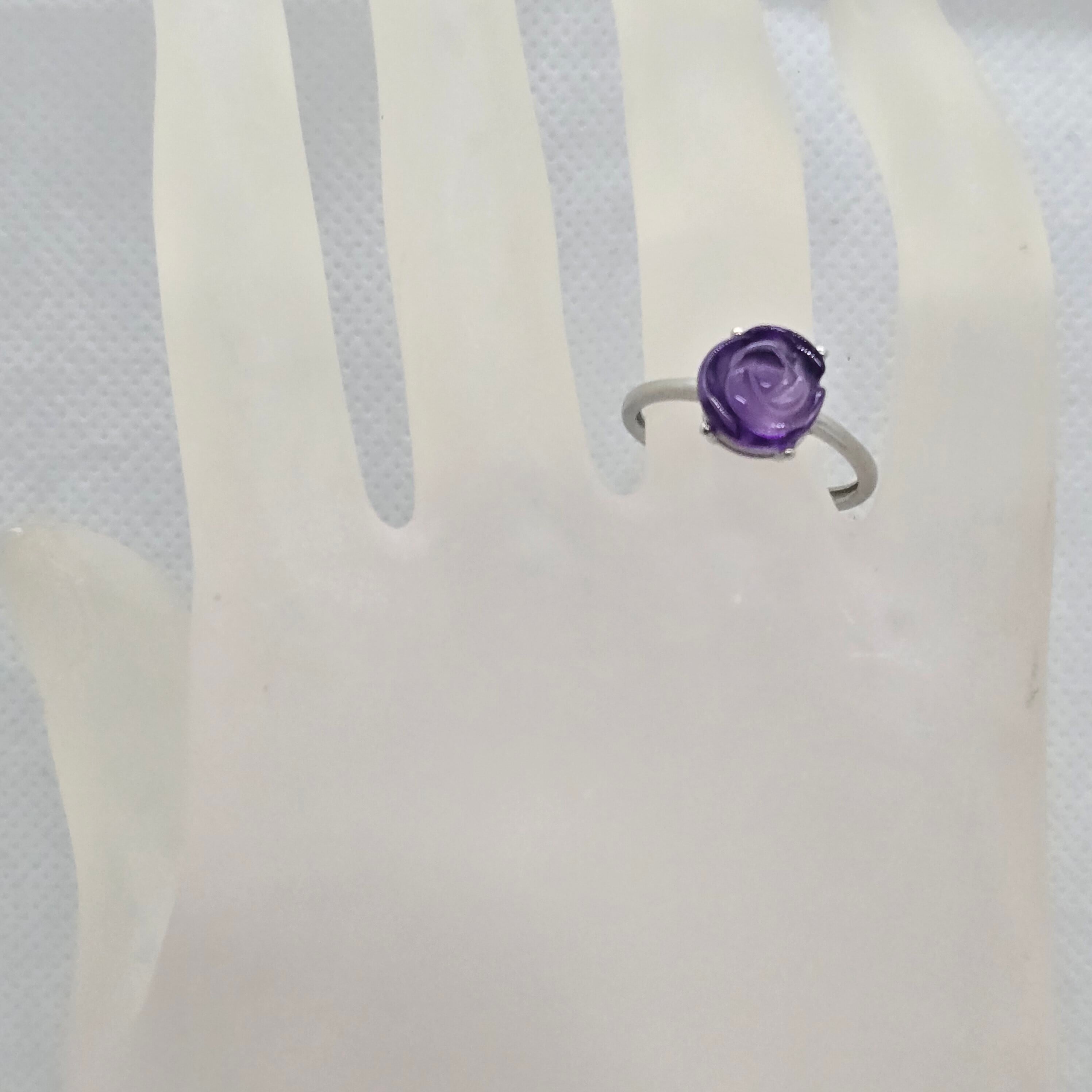 ★高品質天然石×Silver925★透明パープルカラー★2月の誕生石★普段使いにもおすすめの万能リング★アメジスト【紫水晶】薔薇カットリング★石サイズ縦約9-10mm前後★調整可能フリーサイズ★【ブラジル産】