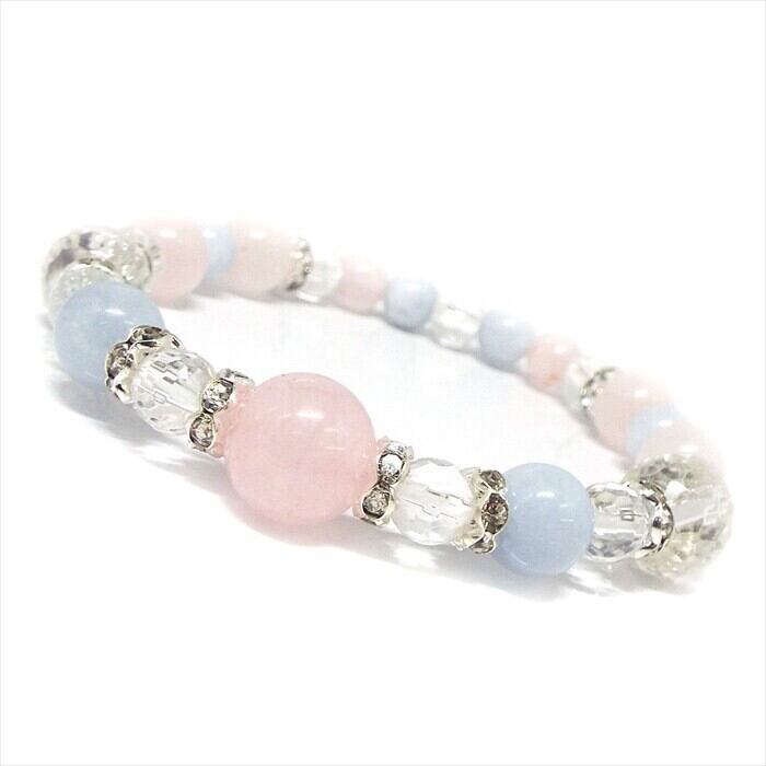 天然石 ローズクォーツ アクアマリン クリスタル 水晶 ブレスレット 《SION 天然石 パワーストーン》
