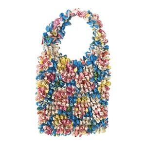 絞りの一粒一粒は手で丁寧に絞られております。伸縮自在なため、中に入れるものによって形状が変化し、折りたたむ必要もなく、簡単に収納できます。絞りが伸びてきても、水洗いをしていただければ元に戻ります。