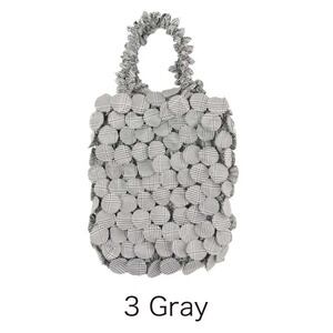 絞りの一粒一粒は手で丁寧に絞られております。伸縮自在なため、中に入れるものによって形状が変化し、折りたたむ必要もなく、簡単に収納できます。絞りが伸びてきても、水洗いをしていただければ元に戻ります。