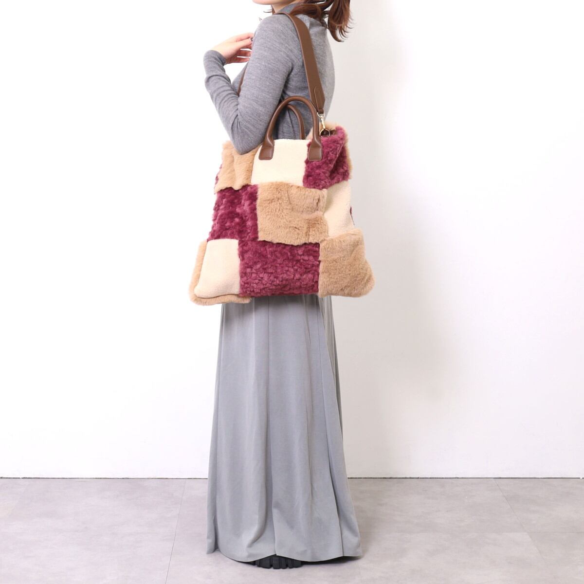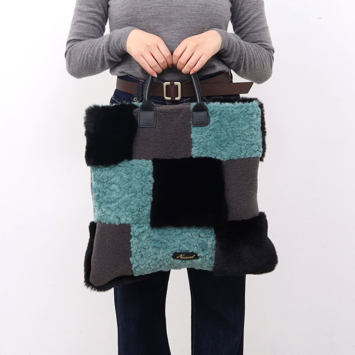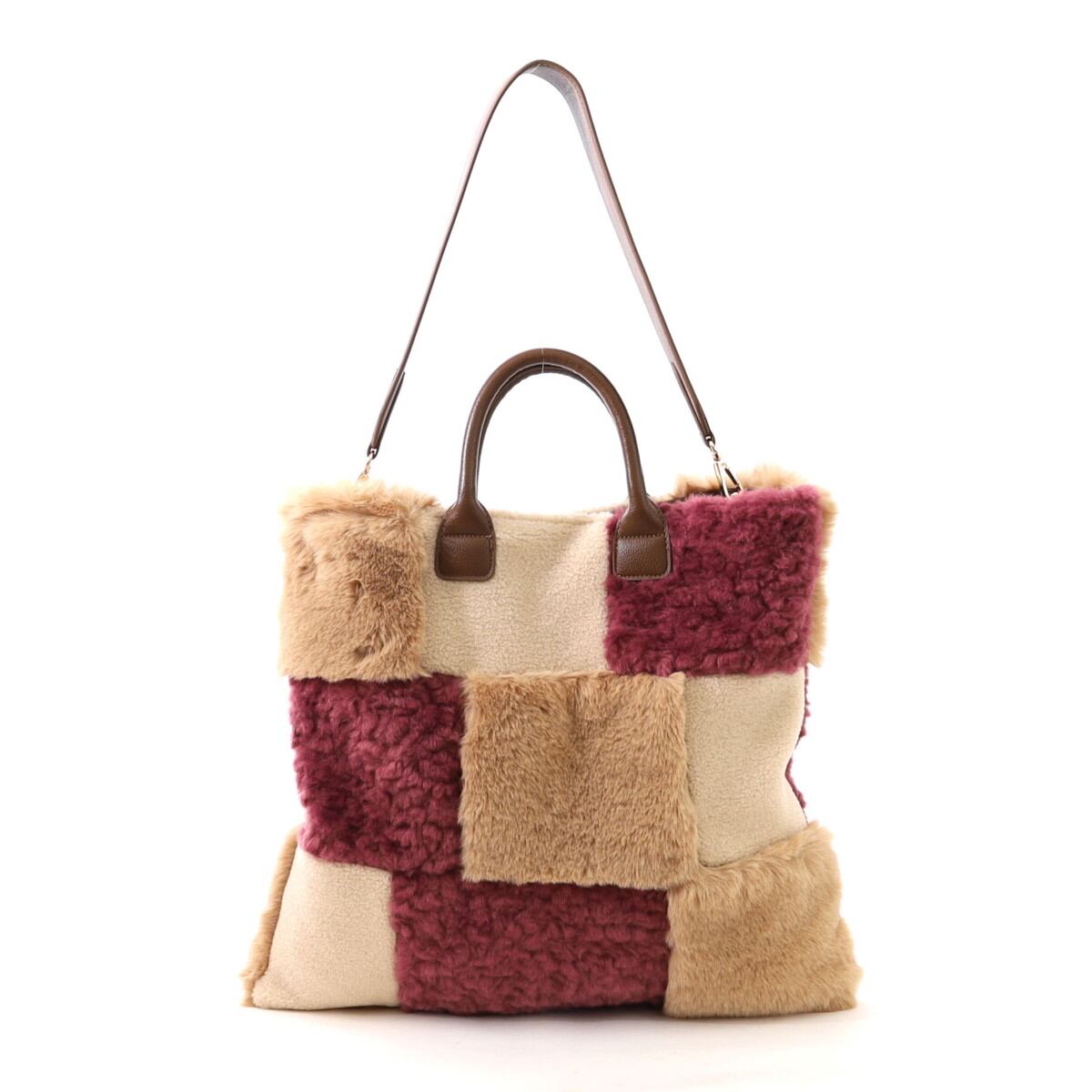 3種類のファーをパッチワークした大人っぽいデザインのトートバッグ。