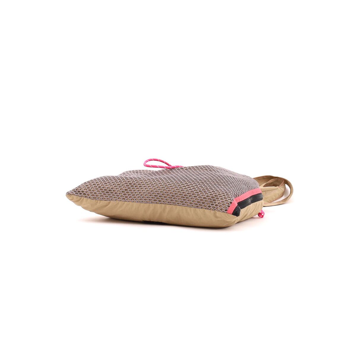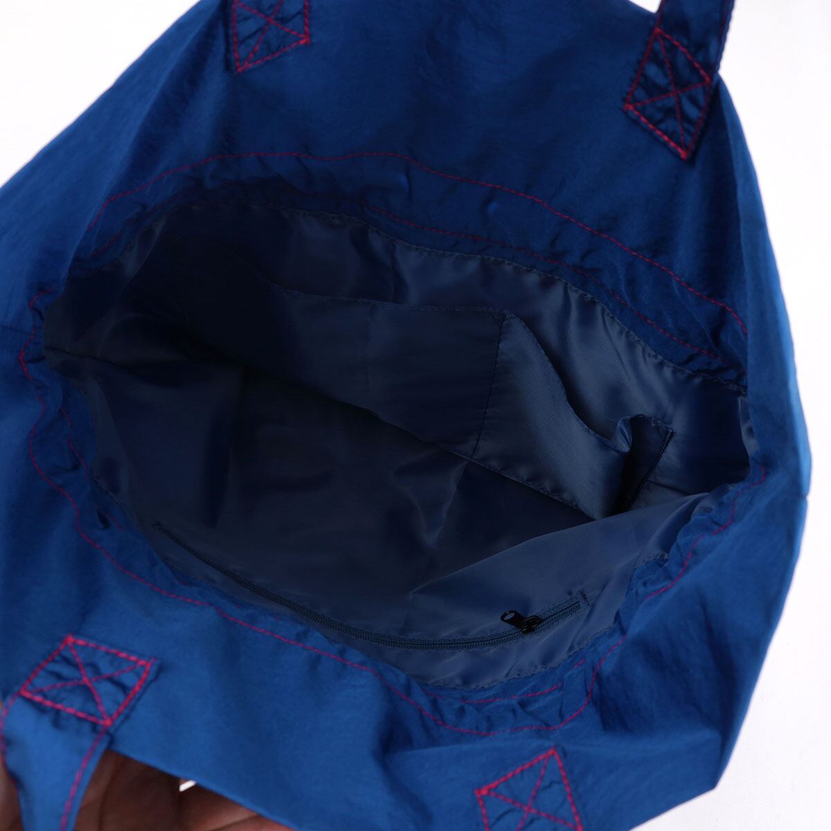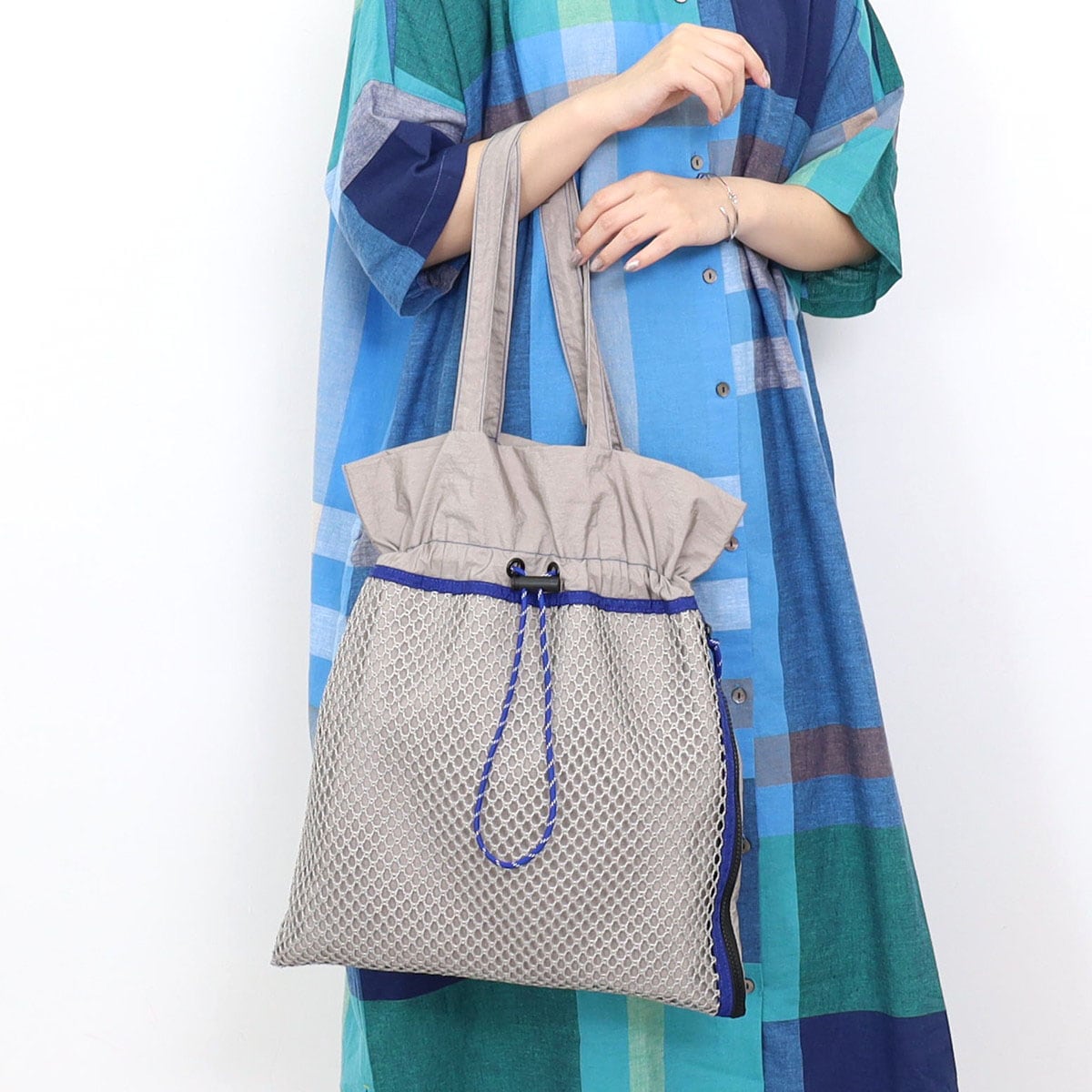 ポイントカラーのパイピングがアクセントになった巾着トートバッグ。