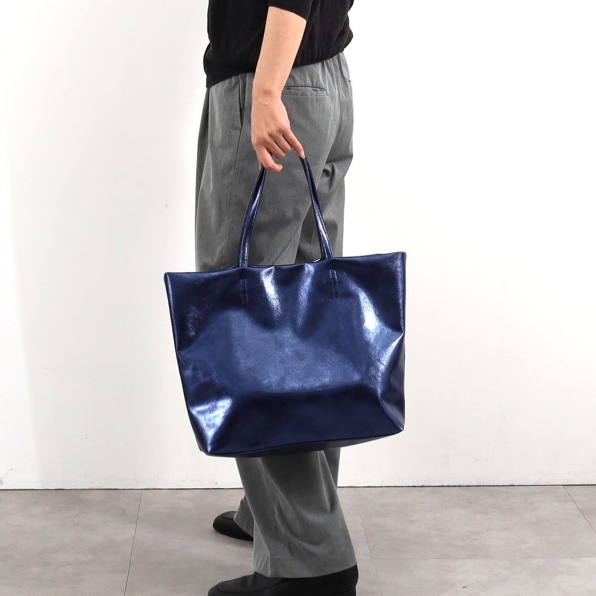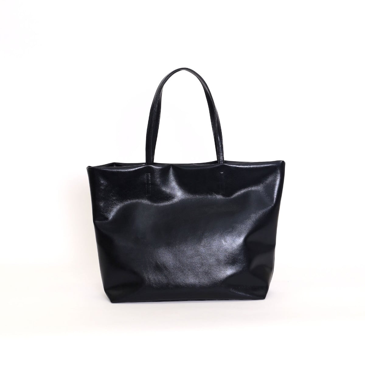 素敵な光沢感がシンプルなデザインのトートとマッチしておしゃれに。