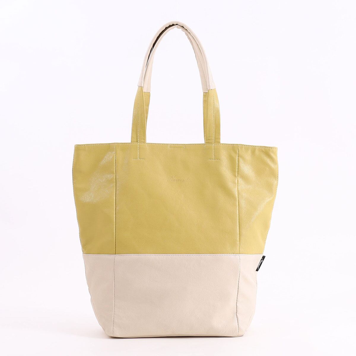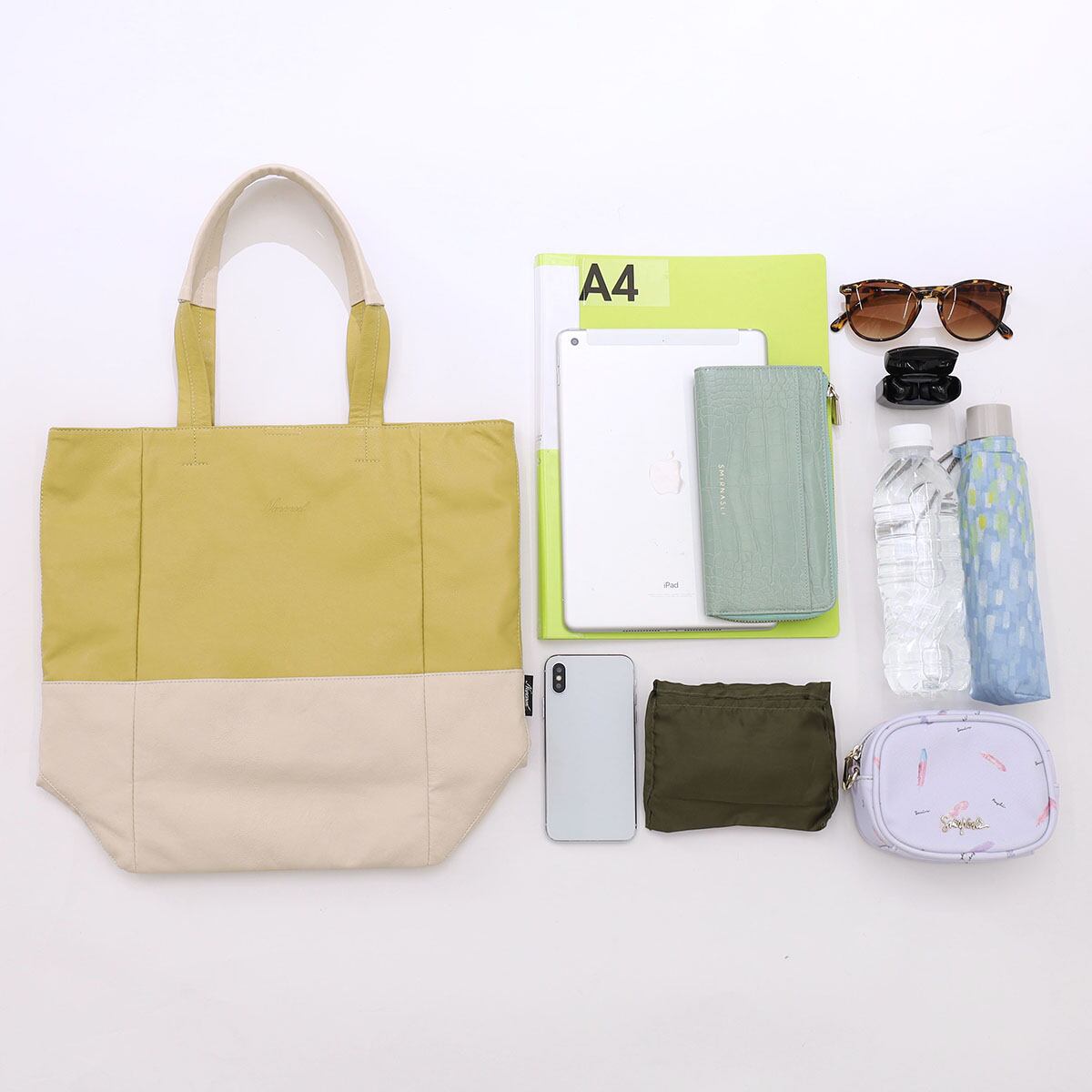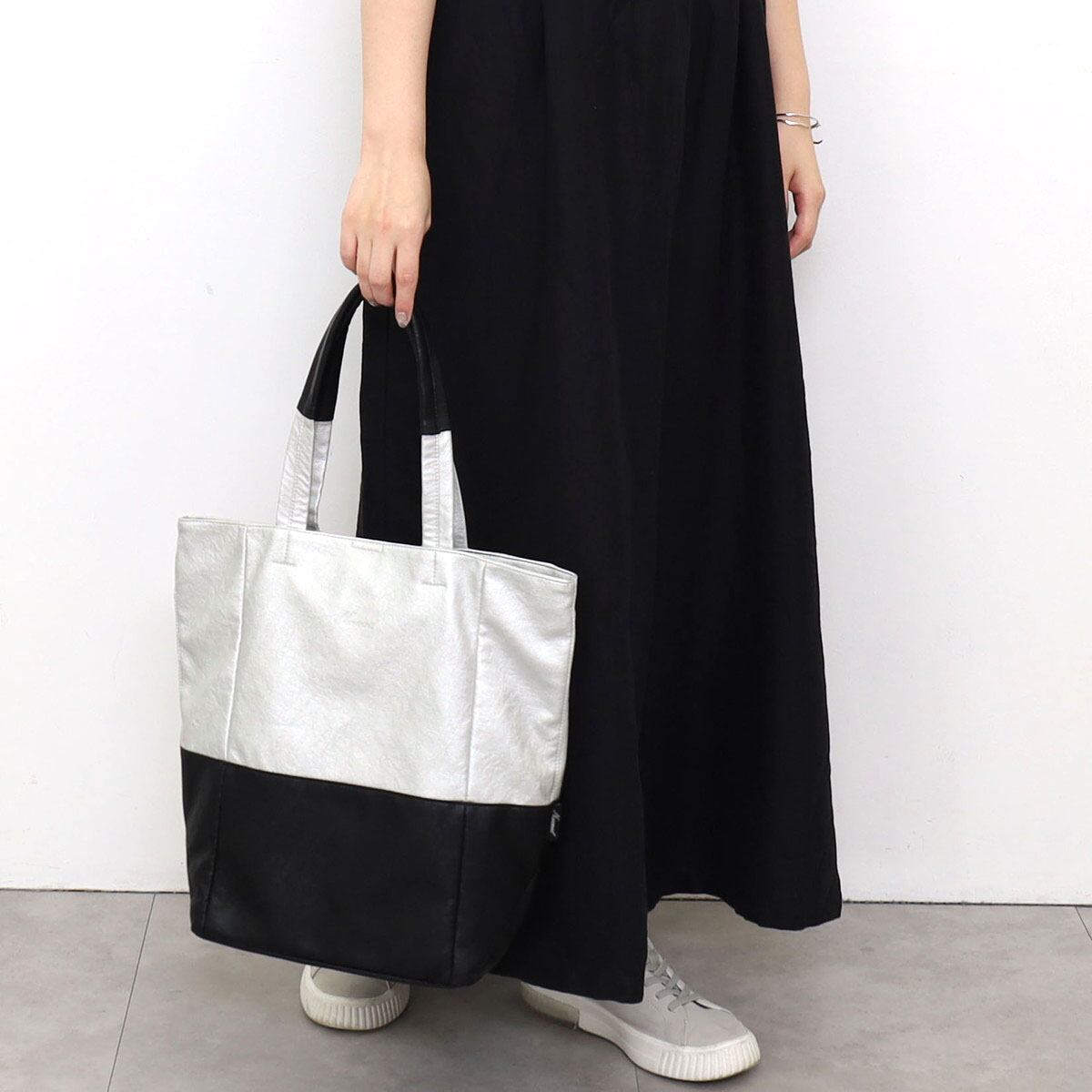 絶妙なカラーリングのバイカラーで仕上げたトートバッグ。